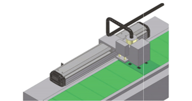 將基板固定于電動滑臺上,得手滑臺等速移動的特性,執(zhí)行基板的噴字作業(yè)。