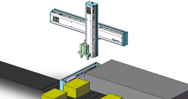 利用單軸電動滑壼組成XY機(jī)構(gòu),在輸送帶上方執(zhí)行物品的搬運(yùn)從業(yè)
