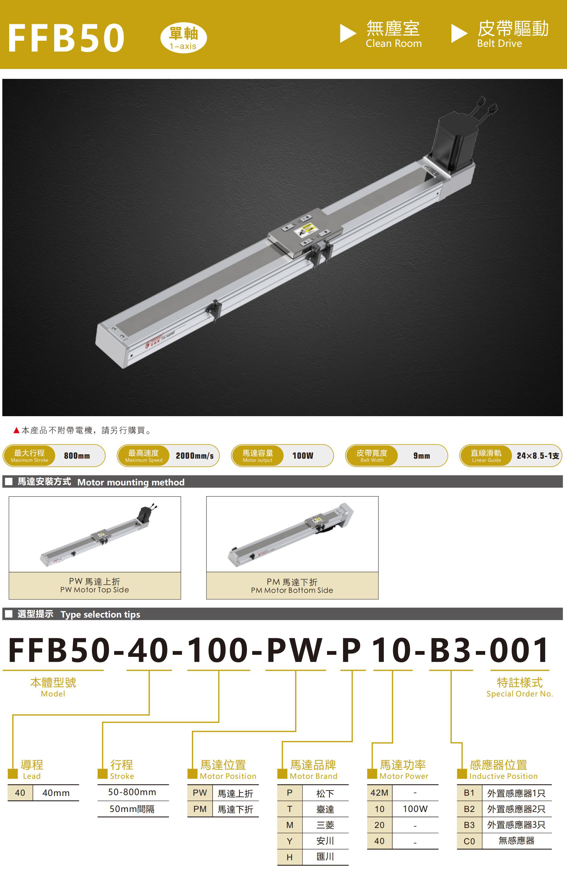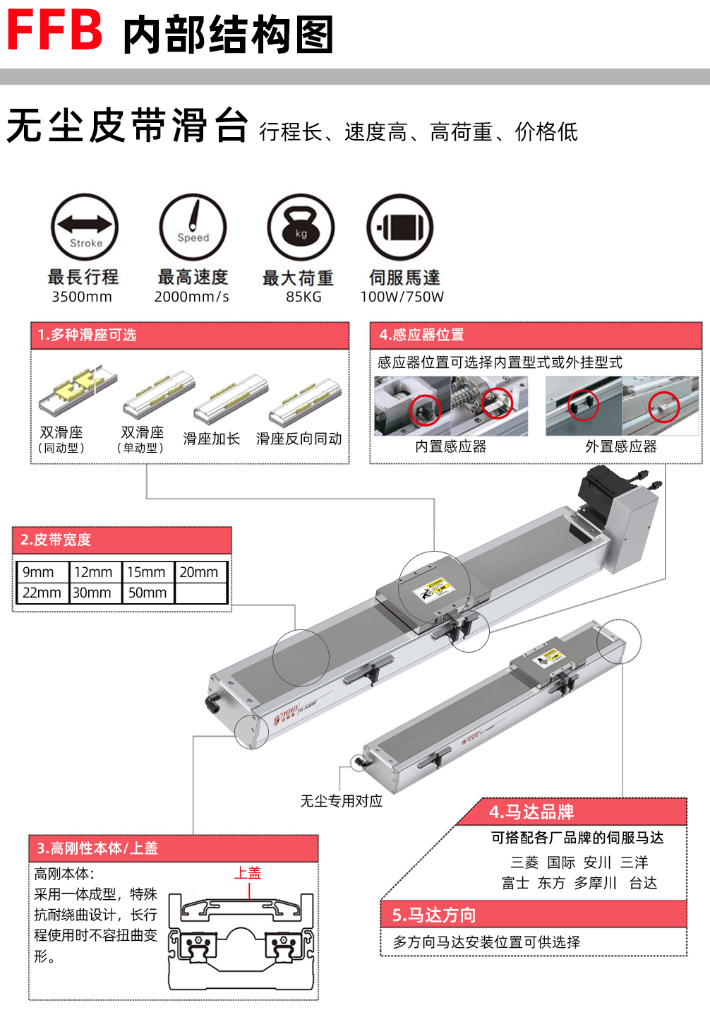 FFB50無塵皮帶模組、直線滑臺(tái)線性模組