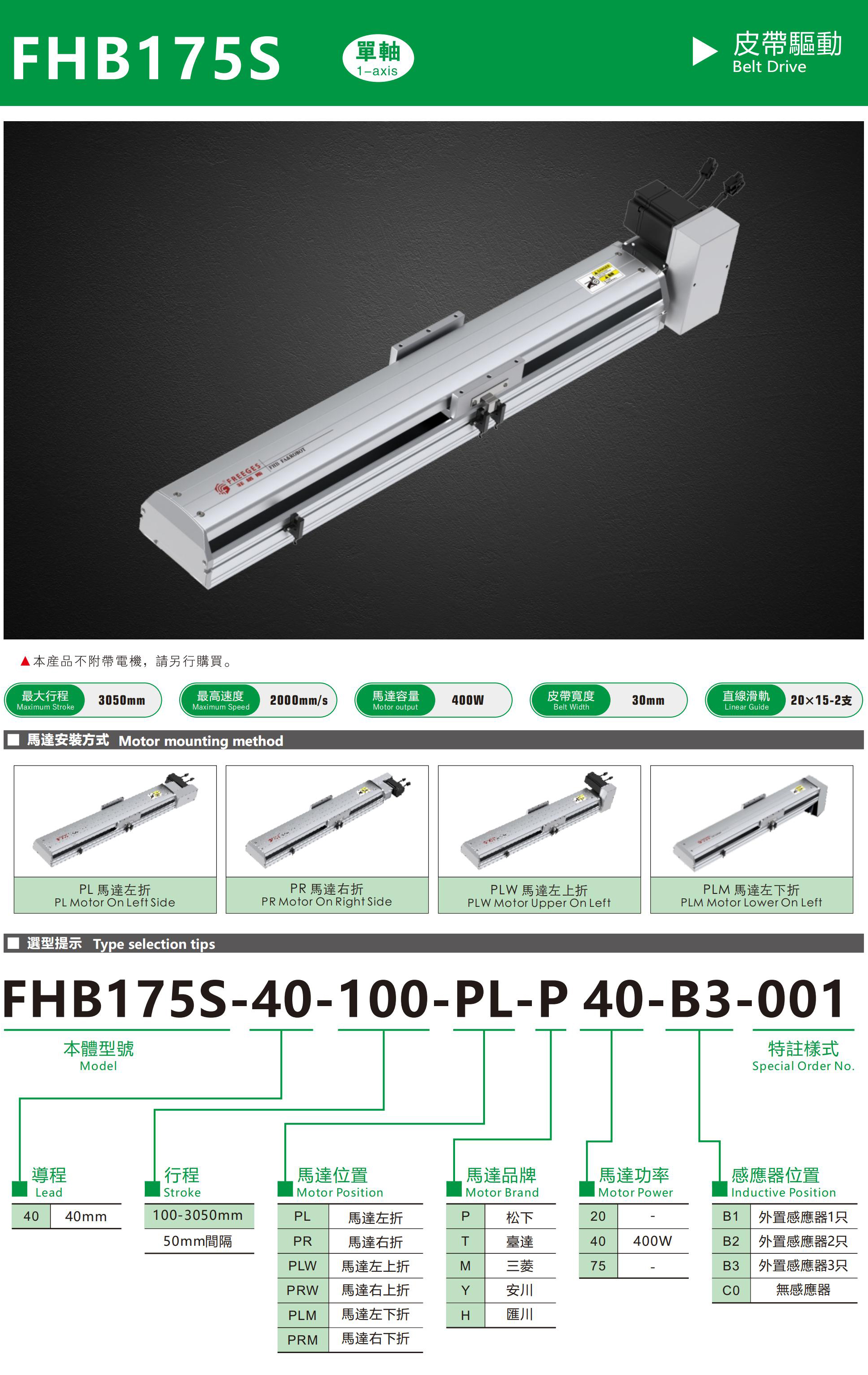 FHB175S標(biāo)準(zhǔn)皮帶模組、直線滑臺(tái)線性模組