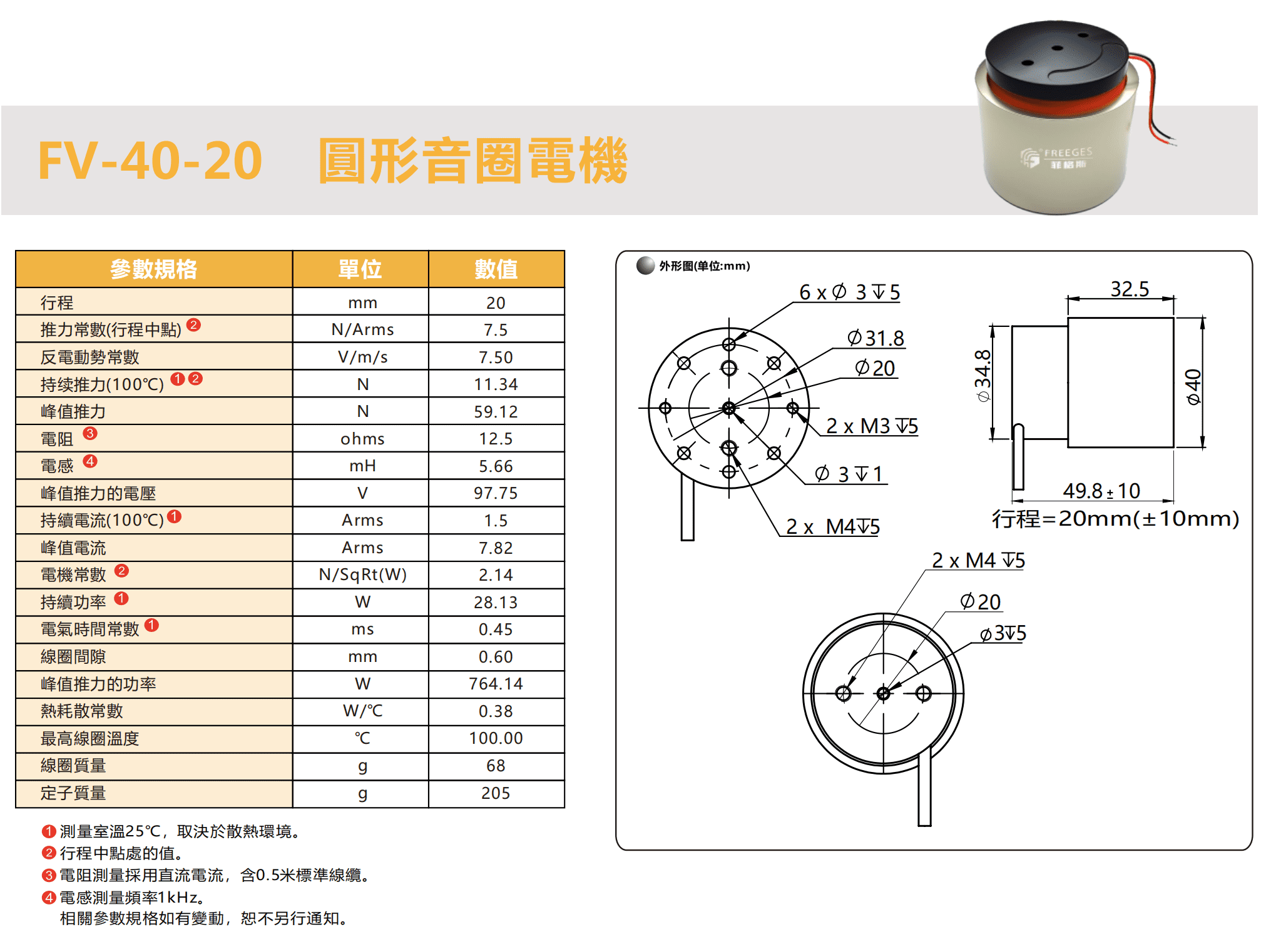 FV系列音圈電機(jī),圓柱型音圈電機(jī),線圈中的電流與永磁體相互作用產(chǎn)生推力,實(shí)現(xiàn)直線運(yùn)動,可用于兩點(diǎn)控制、伺服控制和力控制。