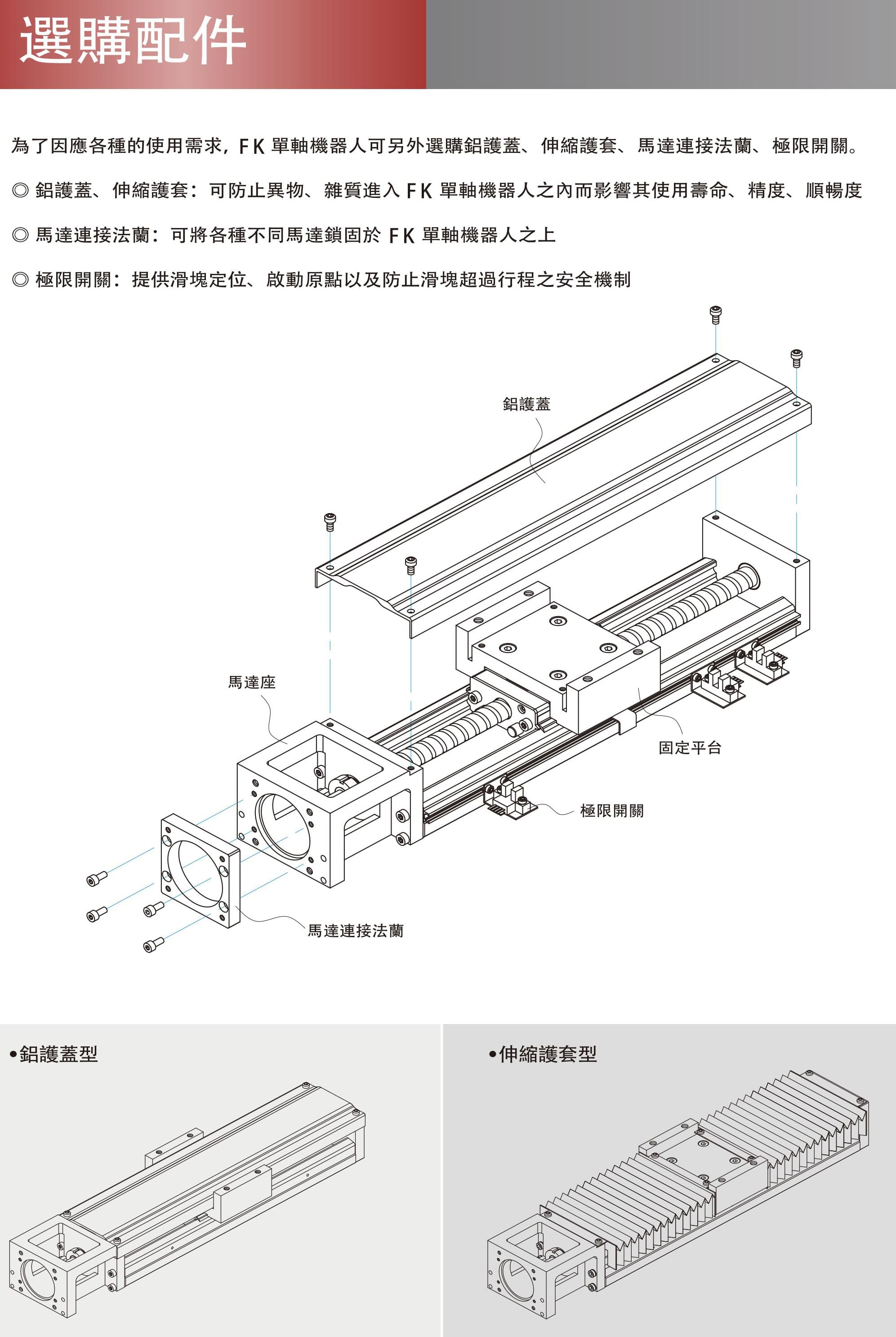 FK單軸機器人主要是主透過模組化之間設計,將滾珠螺桿和線性滑軌整合在一起,因此可提供具有高精度、快速安裝、實用、高剛性、體積小、節(jié)省空間等特性。